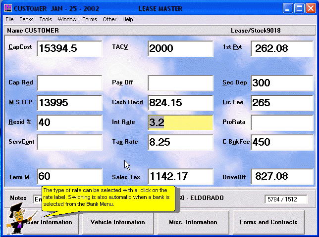 The Lease Master shown above in its large screen mode is the first screen you see when you run the program.