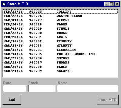 With this information the Month to Date Report may recall each transaction from the Sold Files and create a complete and up to date report that may help follow up with previous customers, make mailing labels or aid in the accounting of sales and taxes.