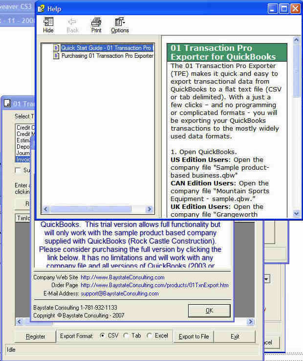 You also need the Bay State Consulting Quickbooks Exporter, Clik here to download and install.