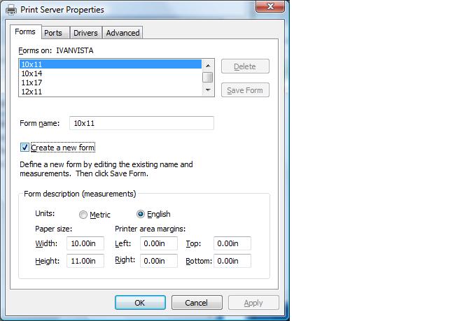 You can change the description and form size depending on the capabilities of your printer driver, (if the size you choose exceeds the capability of your printer then the description will not become available in the next steps.)
